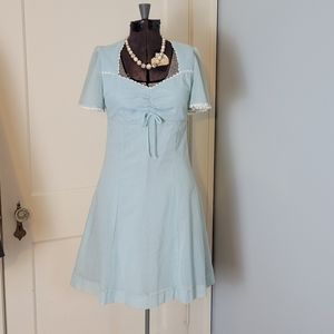 This true vintage dress is really a charmer! Perfect little spring dress. So much sweeter in person and only flaws are 2 holes in lining (pictured) and zip hook is missing eye loop.