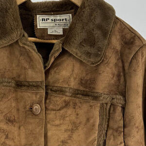 RP SPORT BY REGENT Women's Large Brown Vegan Fur Suede Button Coat Boho Western