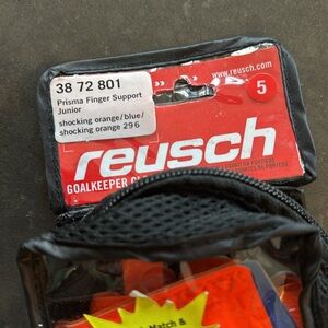 Dynamic Reusch soccer gloves. Bright orange and blue colors. Perfect for goalkeepers. New.