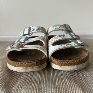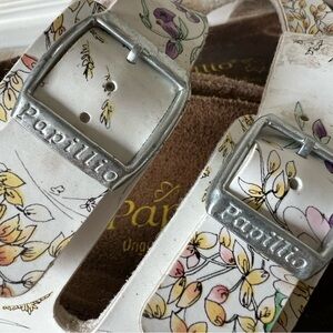 Papillio Birkenstock Boston Clogs W7 M5 White Floral Slip On Shoes Adjust Buckle