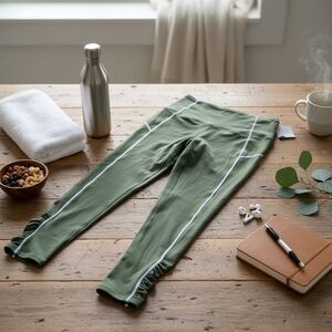 Stylish olive green leggings. High-waisted design. Perfect for workouts or casual wear.