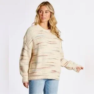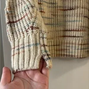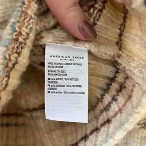 Brand new with tags, this American Eagle women’s waffle knit crewneck sweater in size Small (oversized) is a must-have for your cozy wardrobe. Featuring a neutral beige base with subtle multicolor stripe accents in shades of brown, blue, and rust, this sweater adds a touch of effortless style. The soft knit fabric provides warmth and comfort, perfect for layering during chilly days. Designed with a relaxed fit, ribbed cuffs, hem, and neckline for a classic yet modern look.