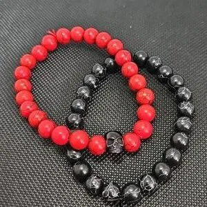 Mens Red and Black Skull Bracelet Set