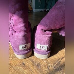UGG Bailey button boots in size 8. Purple suede and fur. Gently used. Please see photos and video.