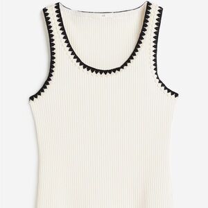 ✨SOLD✨ H&M Embroidered Ribbed Knit Tank Top in Cream - Small