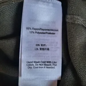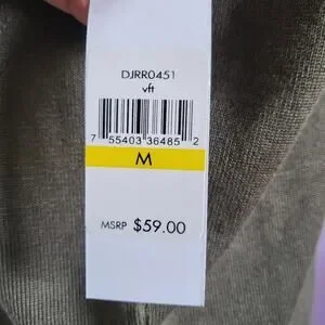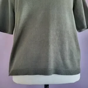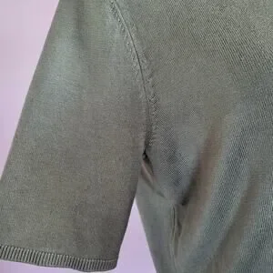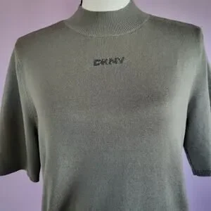 NWT Medium DKNY Jeans Olive Green Short Sleeve Mock Neck Rhinestone Logo Knit Top