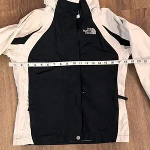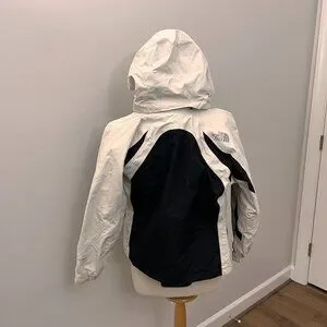 This is a super cute water resistant, light weight ski jacket shell. Great to wear over sweaters or a lightweight fleece. All the great features that you expect from North Face. The hood zips off in case you prefer to wear hats.