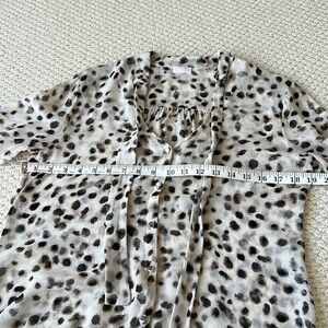 This beautiful silk blouse has only been worn a couple of times and is in like new condition! The front tie of the blouse can be removed for a completely different look -