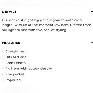 STYLE/FIT: Straight Leg Crop Raw Hem