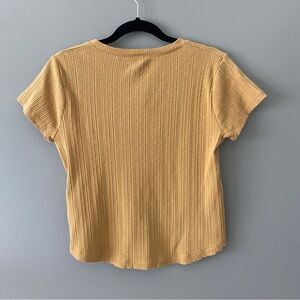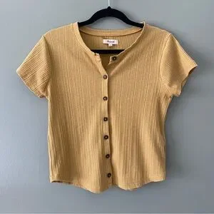 Madewell Pointelle Button-Front Slim Tee, Gold Color with Brown Buttons, Size S