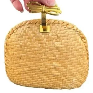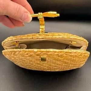 Vintage 1960s Koret Basketweave Natural Gold Handbag Wicker Woven Purse Boho