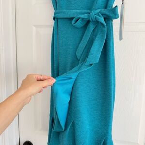 NWT CALVIN KLEIN Metallic Teal Short Sleeve Ruffle Hem Belted Short Dress 4
