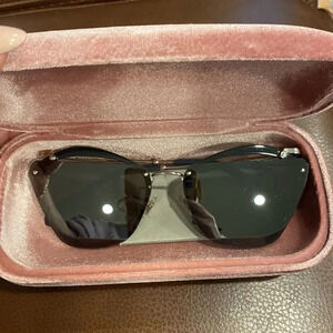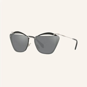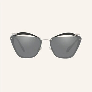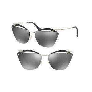 Shining silvertone hardware adds a touch of polish to a stunningly modern pair of sunglasses fashioned with curvy cutout lenses that float atop bold frames.