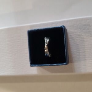 Beautiful Pandora diamond rising star ring. Marked 925 ALE 52. It is approximately size 6.25. Features a gold accent. Perfect for any occasion.