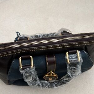 @erika1mr - Hello! Opening is approx 14 in wide and it narrows at base to approximately 12 in. Height is 7 in and removable strap is approximately 19 in.