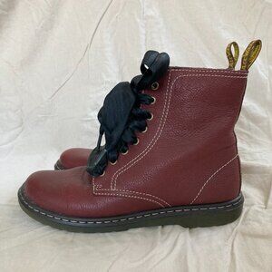 Practically brand new—worn once or twice. Rich burgundy leather with black ribbon laces, classic Doc Martens stitching, and sturdy sole. Comfortable, stylish, and in excellent like-new condition. Perfect statement boots for everyday wear.