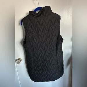 Women’s black puffer, long zip front with snaps vest size large in good condition.