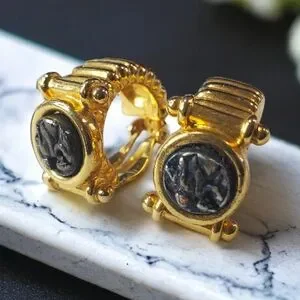 JESARA Vintage 80's Etruscan Coin Clip-on Earrings