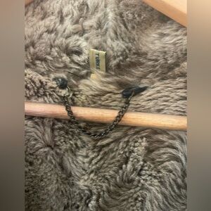 Luxurious black lambskin leather coat. Buttery soft, beautiful condition. Features plush shearling lining. Perfect for cold weather. Measurements in photos.