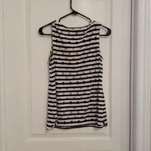 Blouse Sleevless With Black and Light Beige Stripes and Gold Spots. Made in Canada Polyester. Great Condition!