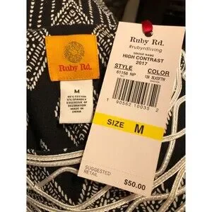 NEW Ruby Road Ladies Black White Short Sleeve Geometric Knit Top Sz. M