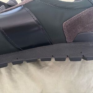 Prada Sport low top sneakers in green/grey/black, nylon and leather. Excellent condition, any flaws are from being in storage. They have been sitting in my husband's closet and I think they've been worn once outside if at all. Labeled UK size 9.5 which is 10 US, 43.5 EU.
