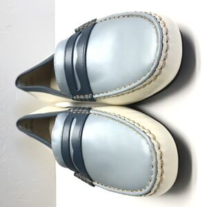 Features: Two-tone, Light blue and white, Stitched detailing, Leather Upper, Penny loafers