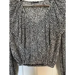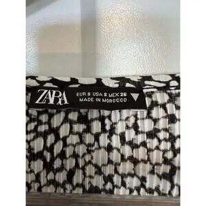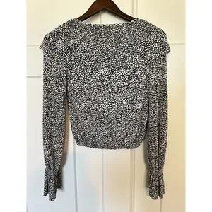 Zara Blouse Women's Size Small Ruffle Neck Crop Long Sleeve Boho Black & White