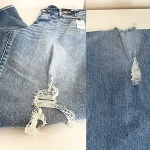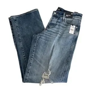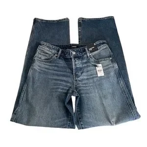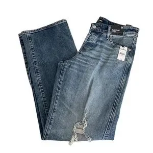 Express Relaxed Straight Leg Low Rise Distressed Ripped Blue Jeans Women’s size 2R. New with tags. Medium wash color. 99% Cotton. Non-stretch. Faded line design. 5-pocket design and 4-button closure. See all photos. Retails for $88.