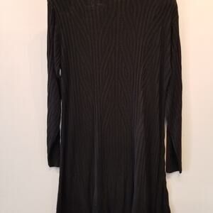 Chic vintage 90's black stretch sweater dress, offering a comfortable fit with a sleek silhouette. A timeless piece in excellent condition.
