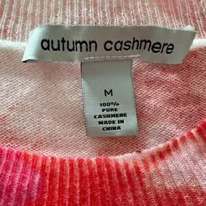 Ultra soft, relaxed fit. 100% cashmere. Dry Clean. No stains , pulls or pilling.
