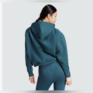 This women's adidas hoodie has a loose fit and is cut from four-way stretch material so it won't restrict your moves. Moisture-managing AEROREADY technology keeps you dry, so you stay comfortable whatever challenges await. A hidden zip pocket hold your phone or other small essentials.
