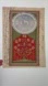 A traditional art form in parts of India. I purchased this on a trip there in 2006. This one showcases a hand painted rectangular carpet with flowers over the official blue stamp. Many colors but predominantly red with green. Measures approx. 12.5”H x 9”W.