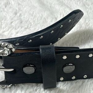 This is a beautiful belt. It’s in excellent shape, and the tooled leather detail is quite beautiful. The silver buckle is clean of rust and in is also beautiful. Unfortunately I bought this as a size medium and I received a small. I hope someone will want to live this belt as much as I had hoped to.