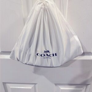 Brand new in silk bag never used, received as a gift. This Coach purse has a pillow soft denim very sleek can be worn as a Crossbody or Shoulder bag with a stylish gold chain.