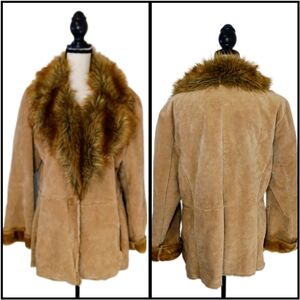 Vintage St. John's Bay 90s y2k Penny Lane Style Tan Leather Faux Fur Coat Size L