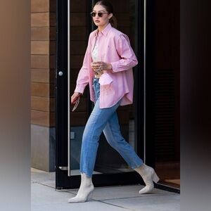 Stylish pink gingham shirt. Features button-down design. Perfect for casual wear. Men’s size L - oversized looks great for stylish girls