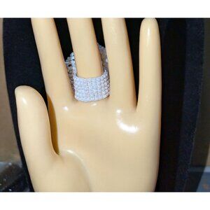Vintage White Beaded Flower Ring Adjustable Size Elegant Cocktail Jewelry