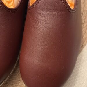 These are red leather slip-on shoes by Charix in Bordeaux color in size 37/6.5 USfor women. They feature a solid pattern with a standard shoe width. The upper and lining material is leather, ensuring comfort and durability. The insole is also made of leather. These extremely comfortable shoes are like new , making them a stylish and practical choice for casual wear.