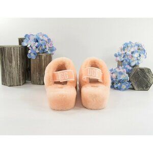 UGG Fluff Oh Yea Peach Sheepskin Fur Slippers Slides Sandals Size 8 NIB