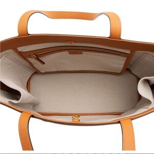 MCM Delmy Visetos Shopper NWT Cognac Black Gold Canvas Leather Medium