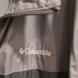 Stylish Columbia windbreaker. Features a zip-up front. Lightweight and perfect for outdoor activities.