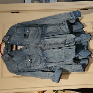 Free People Dylan Babydoll Shacket Snap Front High Low Hem Chambrey Size Sm NWT