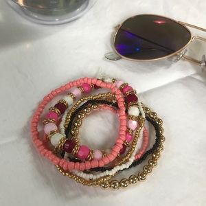 Add these multicolored beach inspired bracelets to your boho look for your next beach day or summer music festival. Very similar in style and color to Pura Vida bracelets 😊 All bracelets measure approximately 2 inches. In shades of pink, gold, rose gold, coral, cream, maroon/wine, black.
