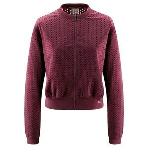 Full-length sweater with a center front zip for easy on and off featuring an open-hole mesh design, lined in PWR mesh for breathability. Crewneck Long sleeves Banded cuffs and hem Exposed front zip closure