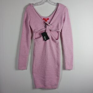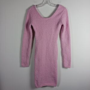 Hera Pink Cut Out Sweater Dress Boucle Bodycon Stretch Long Sleeves Size S NWT