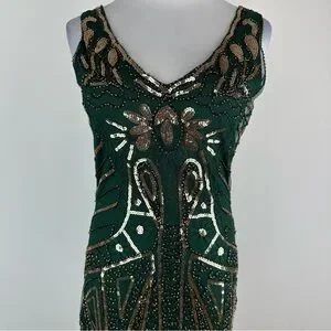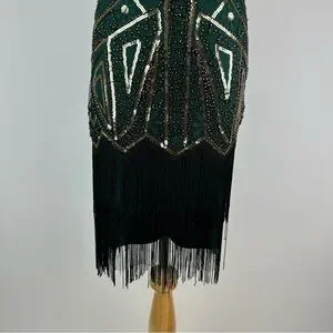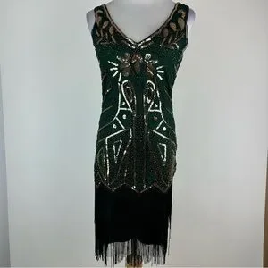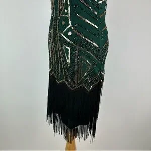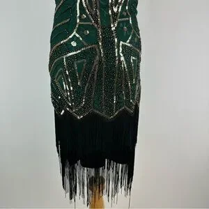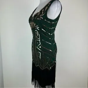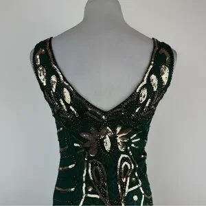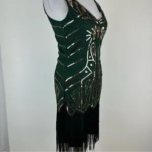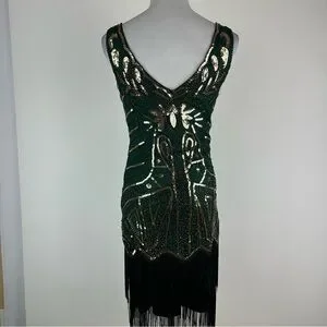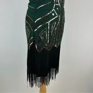 BABEYOND Green Gold Art Deco Sequin Flapper Dress Size XS