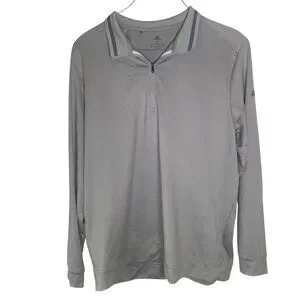 Adidas Mens XL Gray Long-Sleeve Polo Shirt With Zip Collar