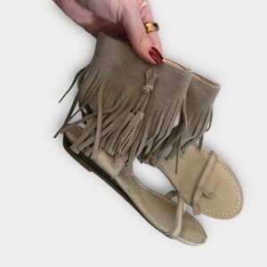 Very Volitile Lex tan fringe faux leather gladiator boho sandals size 7