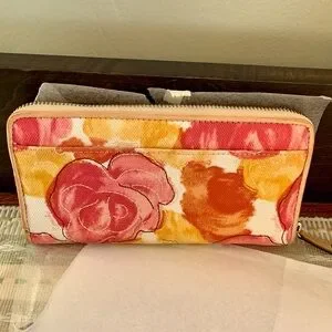 Authentic Coach Ashley floral canvas and leather wallet. Multiple bill & credit card slots, as well as center zip for loose change, etc. Top zip closure. Perfect for any woman looking for a chic and practical accessory. (Matching crossbody bag available under separate listing.)